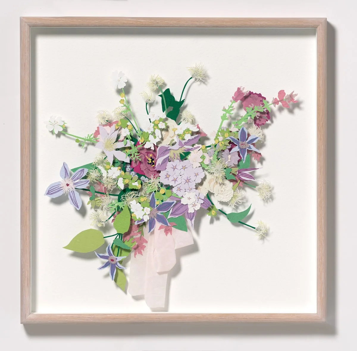 The vision is realized in a meticulously handcrafted paper silhouette. Justina enters the quiet of the studio to translate your floral story into layers of dimensional detail. This is the "Slow Art" phase—where the pressure of the Conrad Press and the precision of the hand-cut line converge to create the ghost-impression of the textile and the form of the flora.